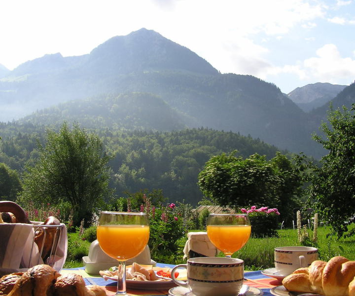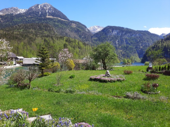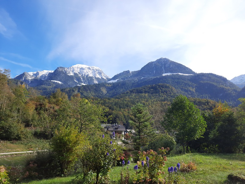 In unserer Ferienwohnung Königssee genießen Sie den Blick auf die Berge und die Ruhe unseres Gartens.